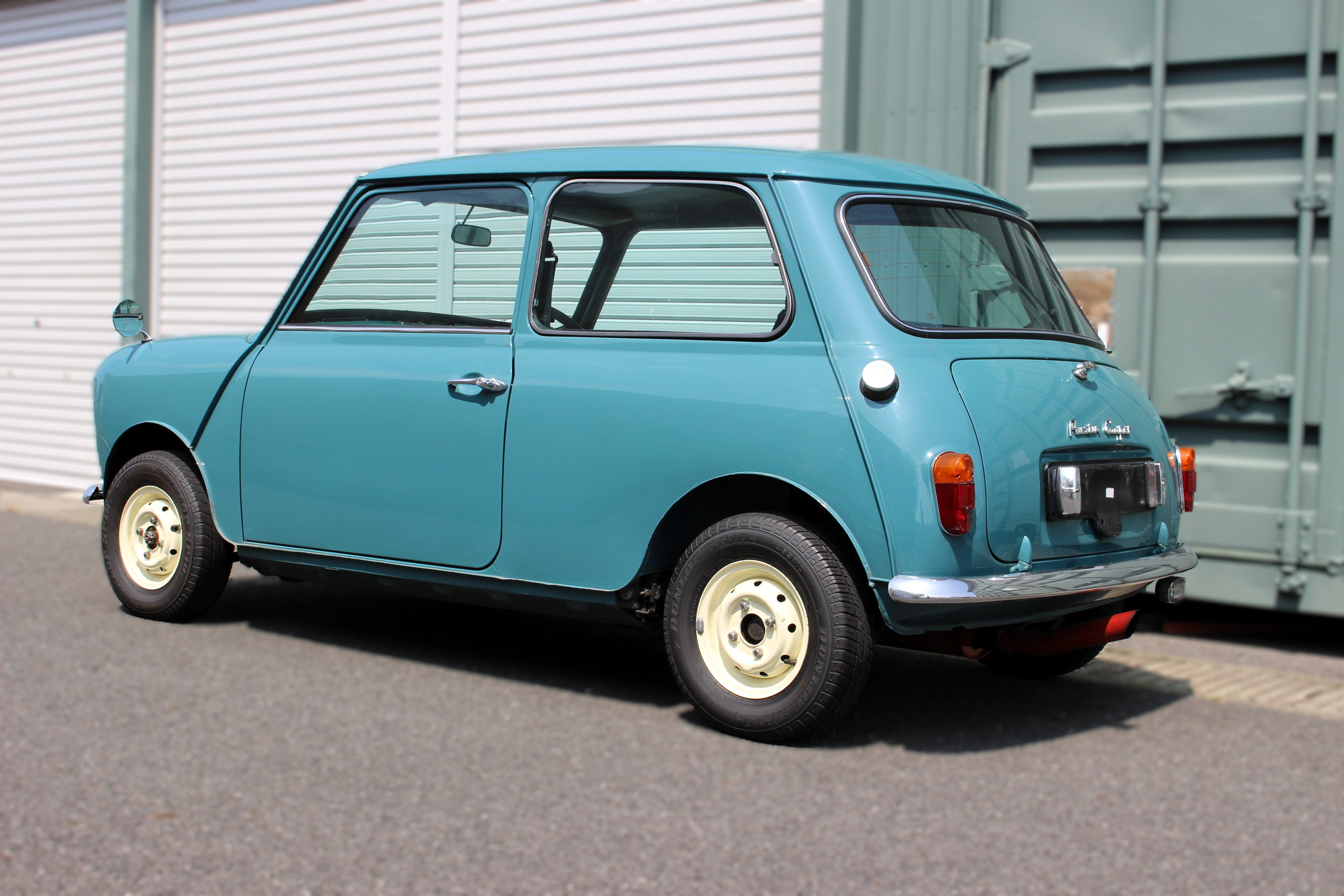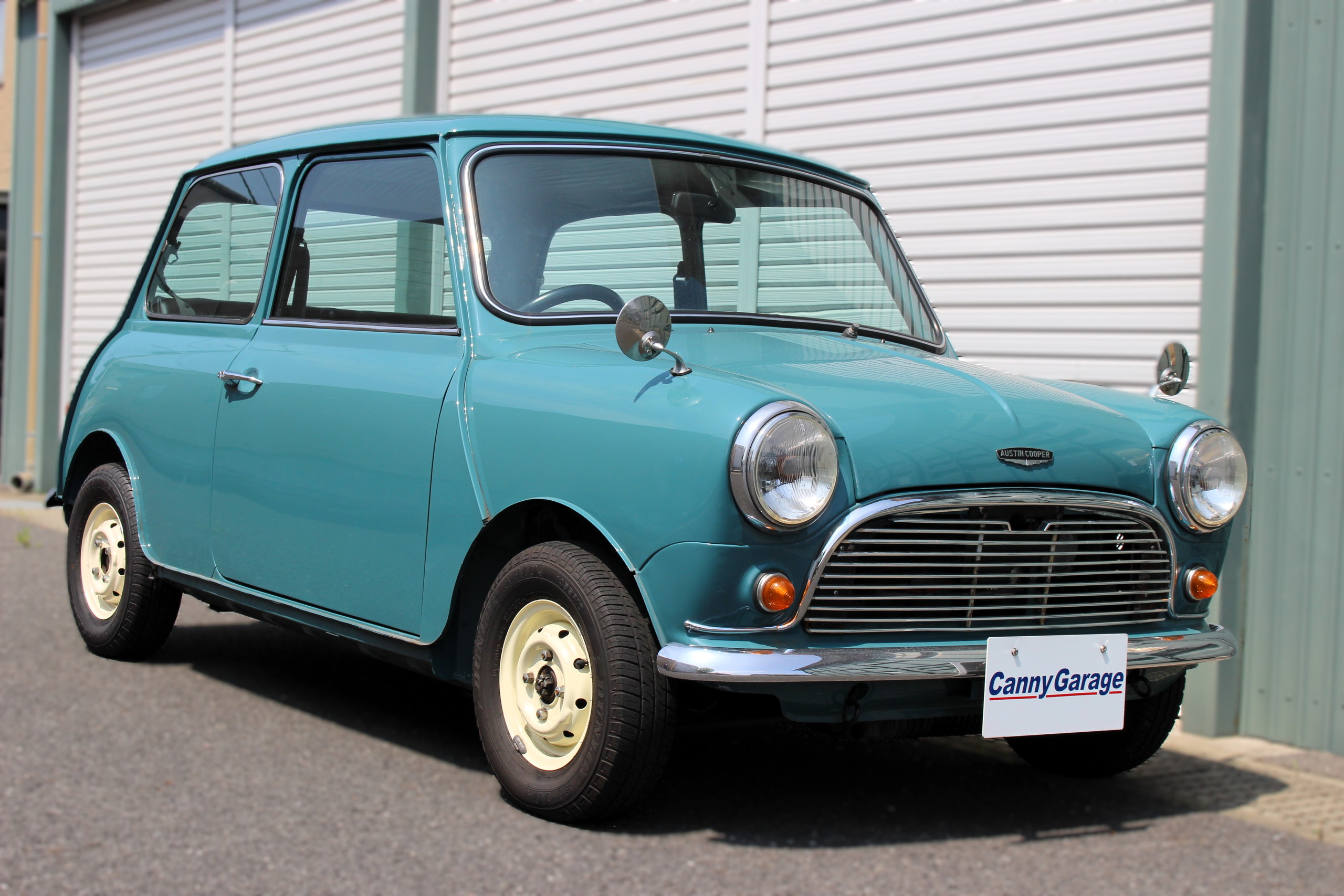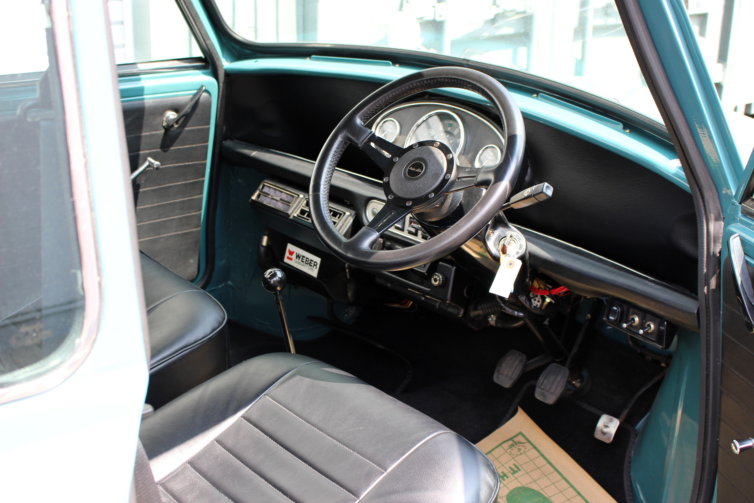 ミニ1000のMk1仕様です。深みのあるおしゃれなブルーのエクステリアに、アイボリーの純正10インチで最高におしゃれな一台です。ウェーバーキャブやクーラーなど、装備も走りも充実でつい欲しくなってしまうミニです。